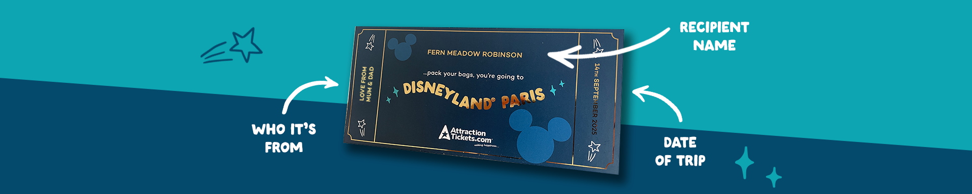 Introducing our full-colour personalised theme park reveal tickets, the perfect way to build excitement and create a physical memento of your trip - perfect for a holiday reveal or a thoughtful surprise gift!