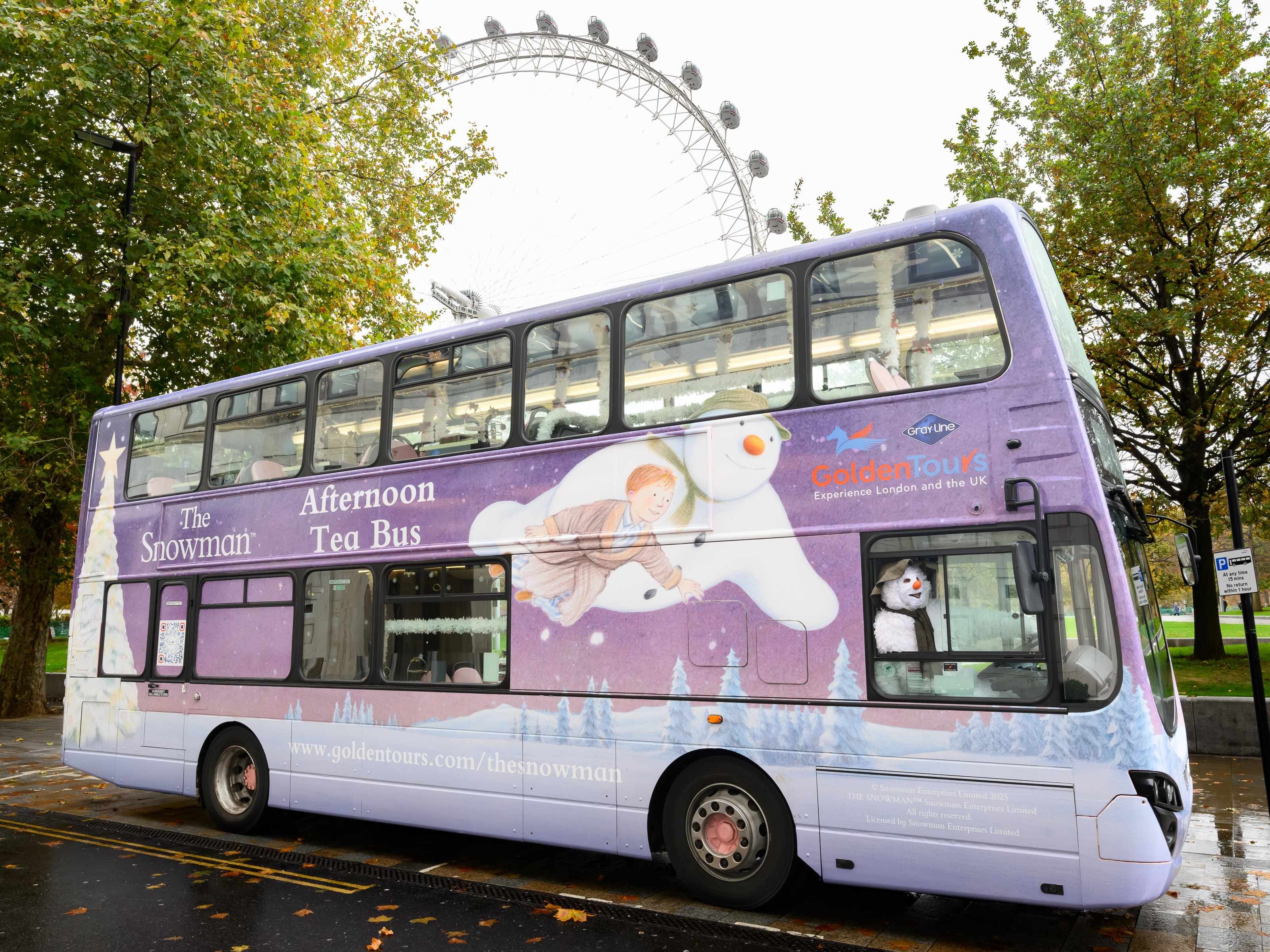 Tuck into a specially crafted afternoon tea inspired by The Snowman™, featuring Begin your tour from either the London Eye or Aldwych and enjoy views of London’s iconic landmarks. See Big Ben, Trafalgar Square, Piccadilly Circus, and more. If you select the evening departure, you’ll also see London’s world-famous Christmas displays, from Oxford Street’s sparkling stars to Regent Street’s stunning angels. Paired perfectly with iconic music from The Snowman™ and classic Christmas carols playing throughout the tour, you’ll be truly immersed in the festivities.a selection of delicious finger sandwiches, sultana scones with jam and cream, festive cupcakes, mince pies, delightful Snowball truffles, and more. Pair your treats with a cosy choice of hot chocolate, tea, or coffee – or upgrade to a deluxe hot chocolate topped with whipped cream and marshmallows!