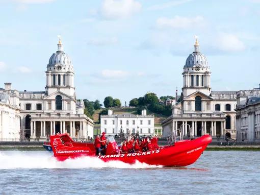 Spüren Sie das Adrenalin auf dieser 45-minütigen Highspeed-Cruise über die Themse. Rasen Sie mit bis zu 30 Knoten (56kmh) durch die britische Hauptstadt, vorbei an ikonischen Sehenswürdigkeiten Londons wie Tower Bridge, der O2 Arena und der mächtigen Thames Barrier.