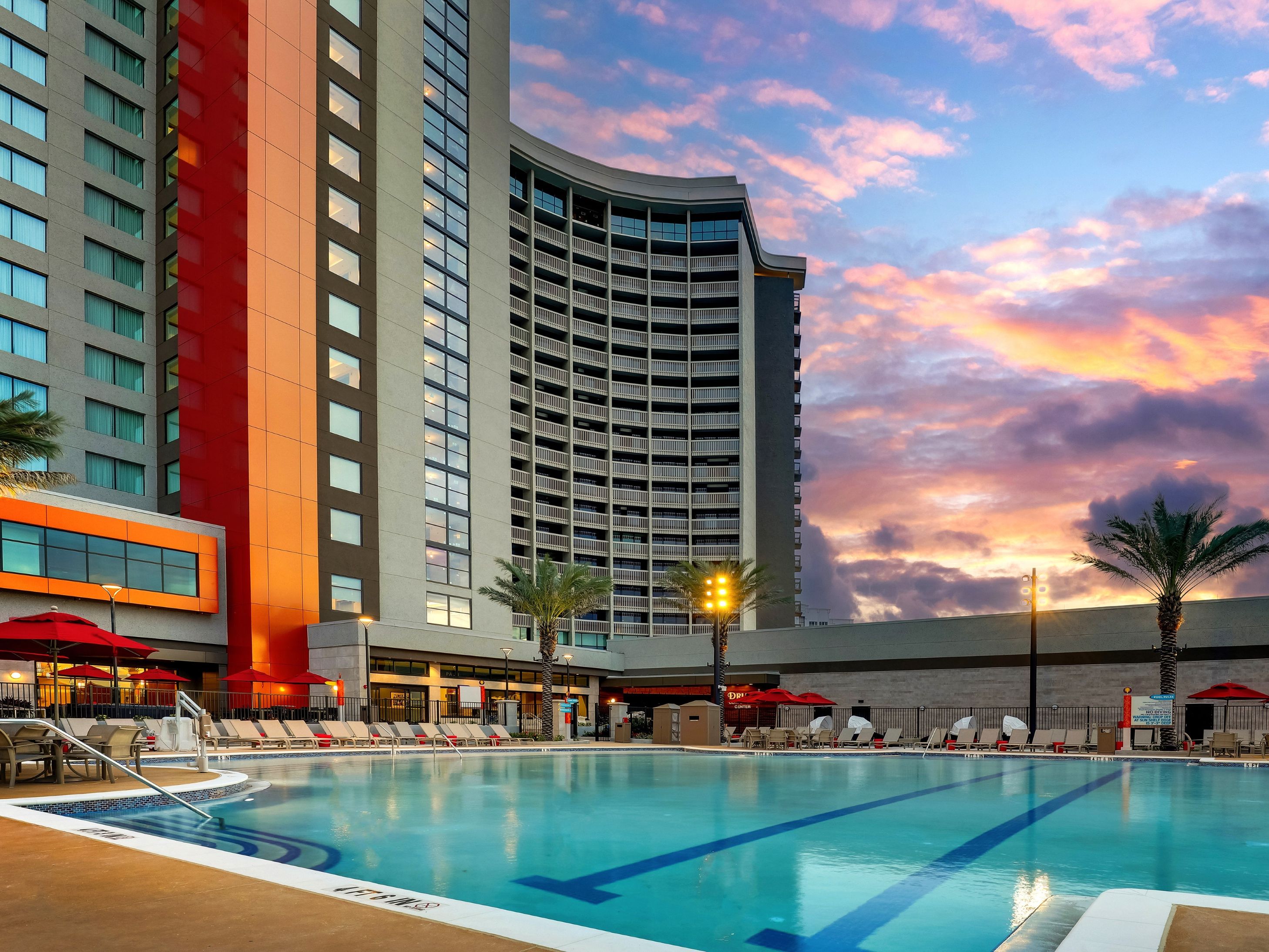 Ideally located steps from Disney Springs®, the Wyndham Garden Lake Buena Vista combines value with official Disney Partner perks like Early Theme Park Entry and free shuttles. Guests can enjoy two pools, a hot tub, and sports courts, while the arcade and kid’s pool ensure family-friendly fun.
