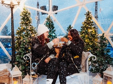 Step inside a full snow globe experience with Christmas at Up at The O2 - Snow Globe Climb.