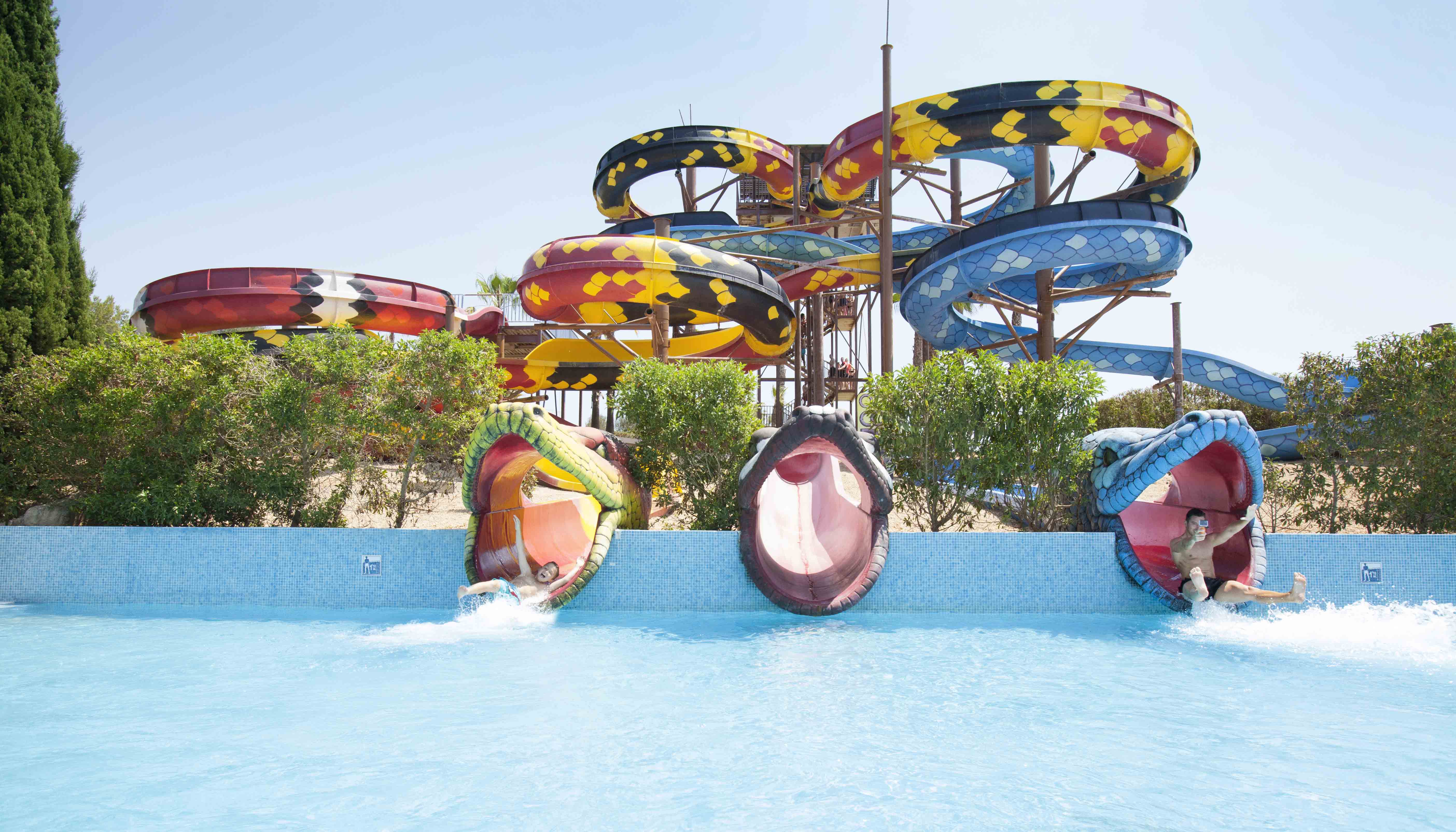 Too hot for the beach? Cool off on the amazing slides and wave pool in the biggest water park in Mallorca: Aqualand Arenal.