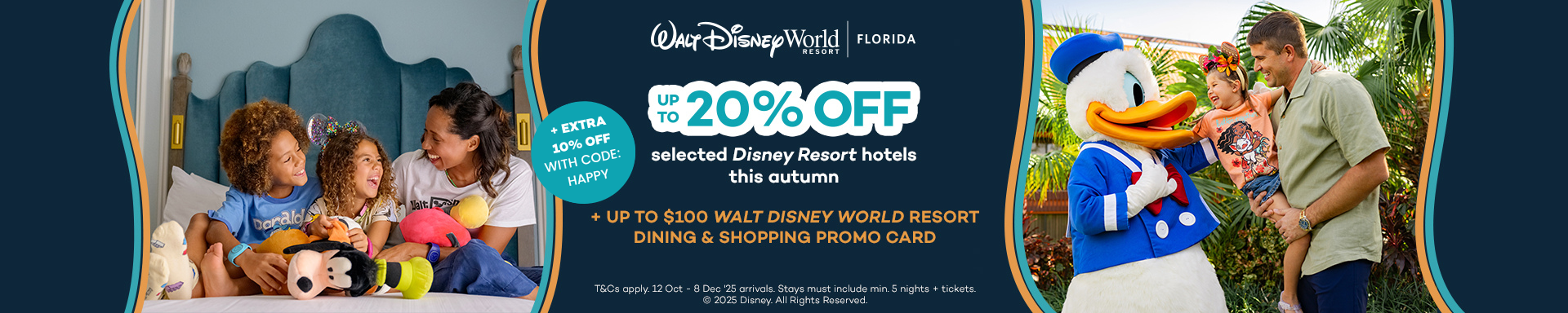 Book a Walt Disney World Resort in Florida hotel + ticket package by 1st December 2025 and get up to 20% OFF selected Disney Resort hotels!