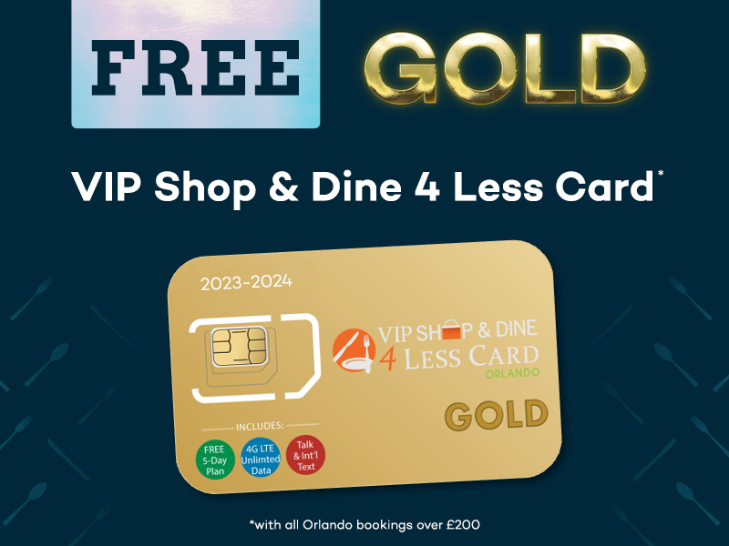 Free Orlando VIP Shop & Dine 4 Less Card GOLD with Orlando Bookings over £200