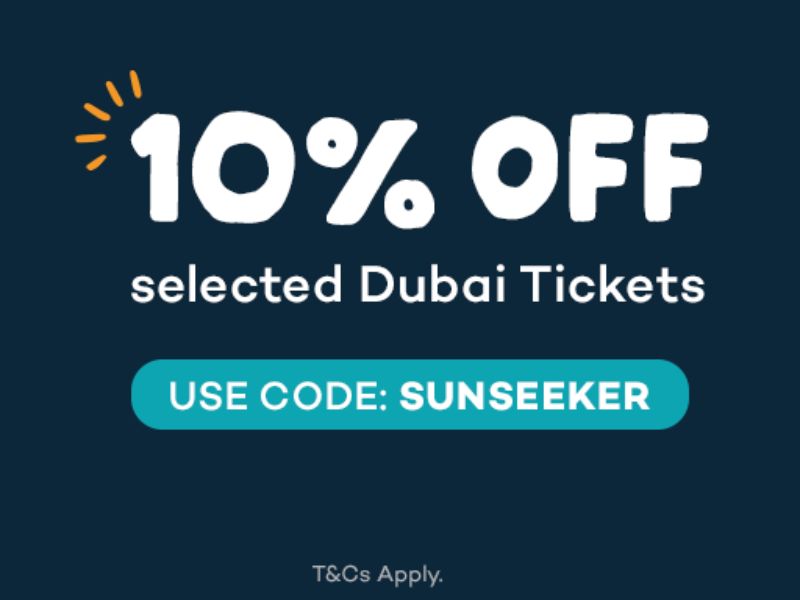 Use promo code SUNSEEKER at checkout to get 10% OFF selected Dubai tickets today.